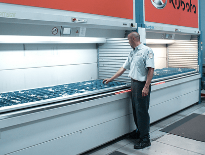 Kubota started by installing two Shuttle VLMs to replace 2,400 sq feet of 18’ hi-bay shelving. Shortly after, two more Shuttle VLMs were installed to replace 1,200 sq feet of 24’ hi-bay shelving. With the workstation, picking area and four VLMs now occupying 620 square feet, Kubota was able to free up just under 3,000 square feet of floor space to increase parts capacity; an 83% floor space savings.