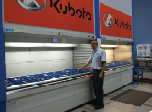 The complete system was purchased and implemented in phases. In the first phase, Kubota purchased six horizontal carousels to replace a three story mezzanine in coordination with a building relocation. “With the horizontal carousels people are now picking parts ergonomically, there’s no more walking up and down the stairs to pick parts orders. Everything is on one floor and delivered right to the worker,” says Ward.