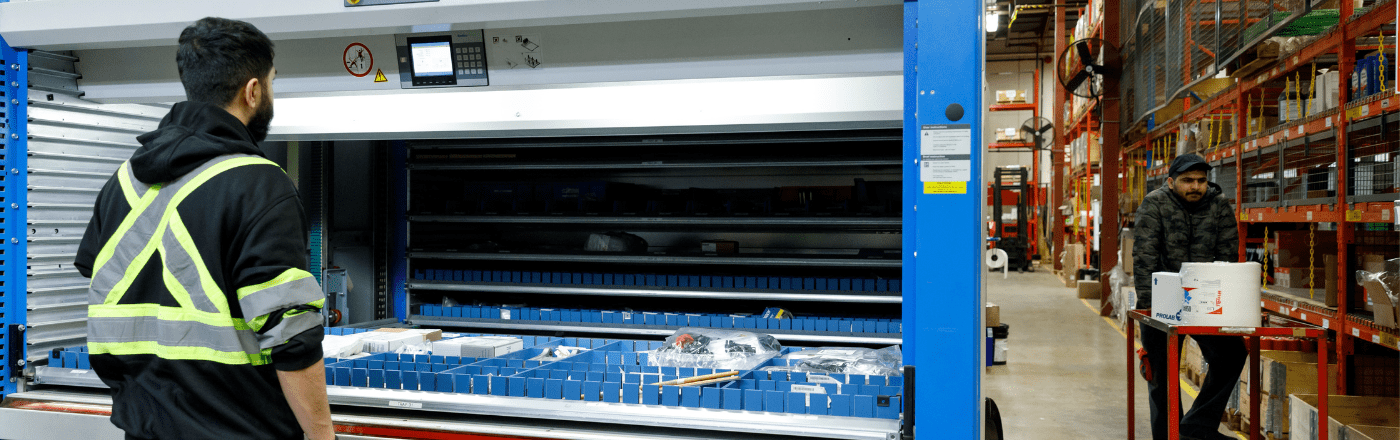 Cette approche moderne en matière d’exécution de commande permet de réaliser des gains importants en efficience et en précision. Nos systèmes « Marchandises vers la personne » transportent automatiquement les produits directement vers l’opérateur pour accroître la vitesse de prélèvement. Ces système sont munis d’un poste de travail avec écran qui affiche l’article à prélever et élimine les erreurs. En plus de permettre des économies d’espace et d’améliorer la santé et la sécurité des travailleurs, les systèmes « Marchandises vers la personnes » s’adaptent aisément à votre réalité opérationnelle.